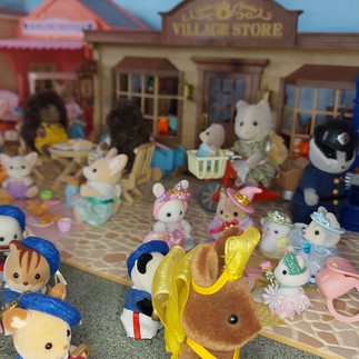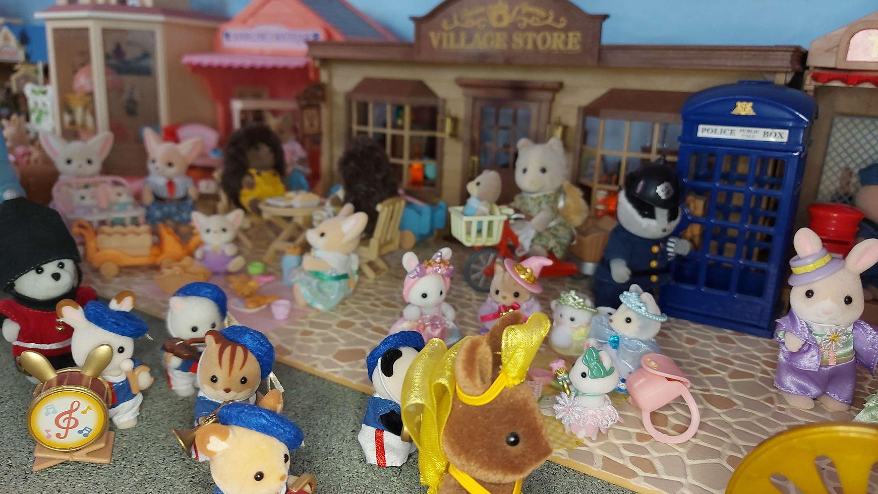 The Sylvanians are having a street party and parade to celebrate the King's Coronation next week! The Baby Band is marching down the street and you may even get a glimpse of the King himself in the Royal Carriage.